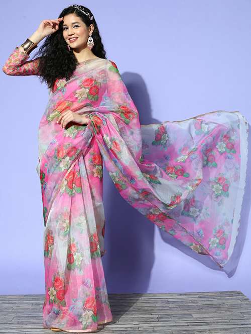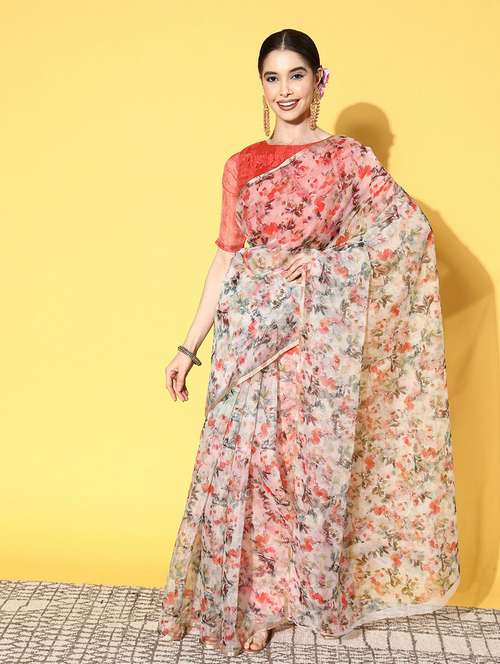 - » women's floral nude colored saree with blouse