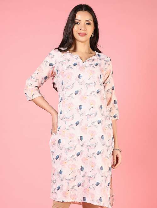 - Grab this beautiful kurta made up of cotton fabric featuring notch neck designs.