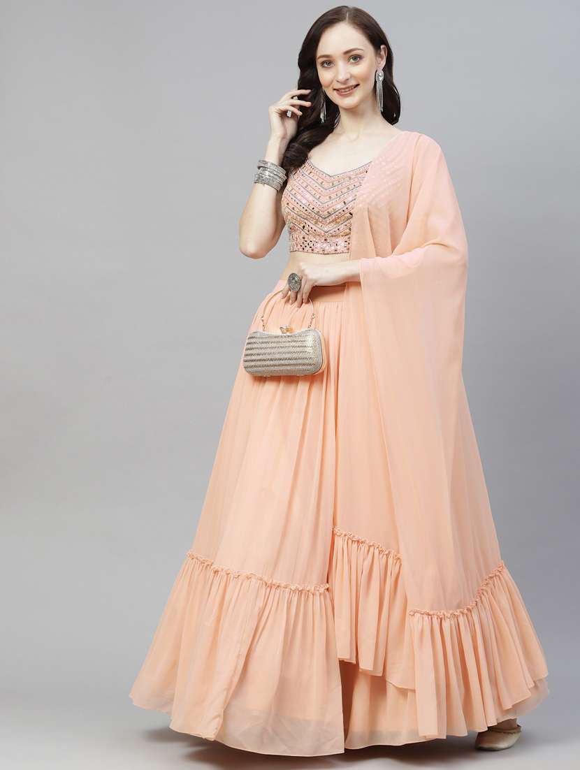 - » mirror work semi-stitched lehenga choli with dupatta