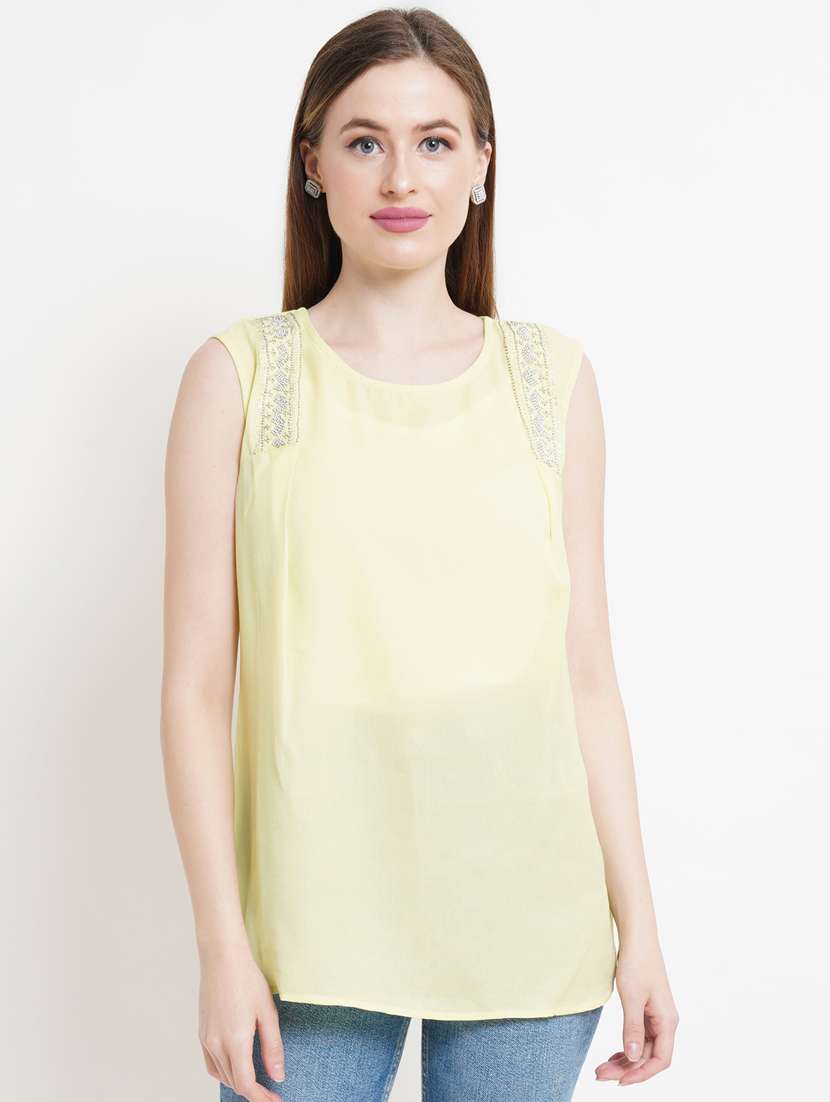 - » women yellow polyester regular top