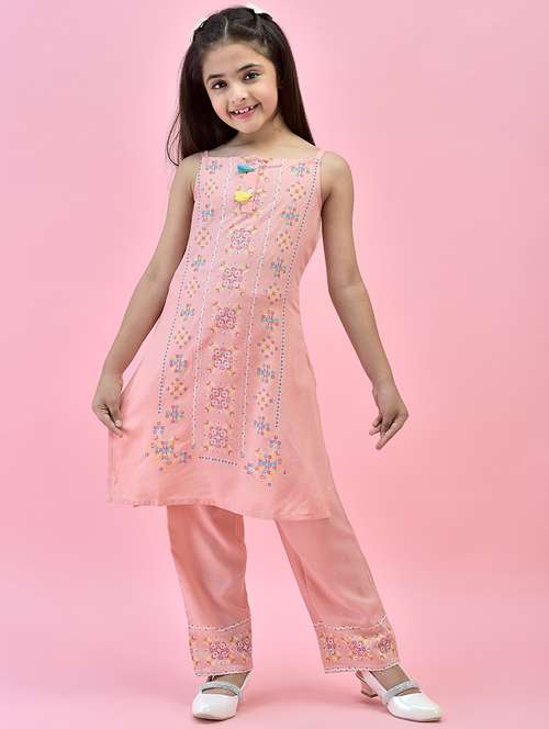 - » girls peach printed kurta pant set