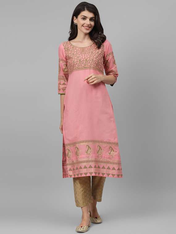 - Grab this beautiful kurta made up of rayon fabric featuring round neck designs.