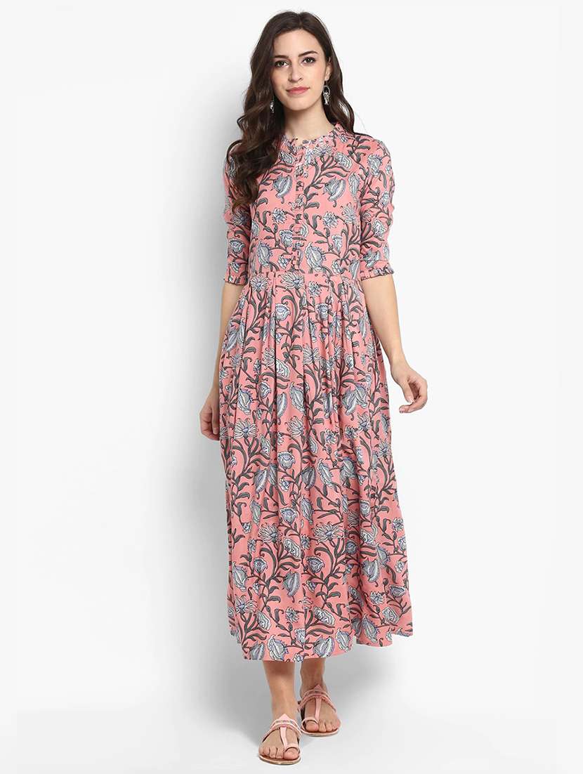 - » women floral print short sleeve flared kurta