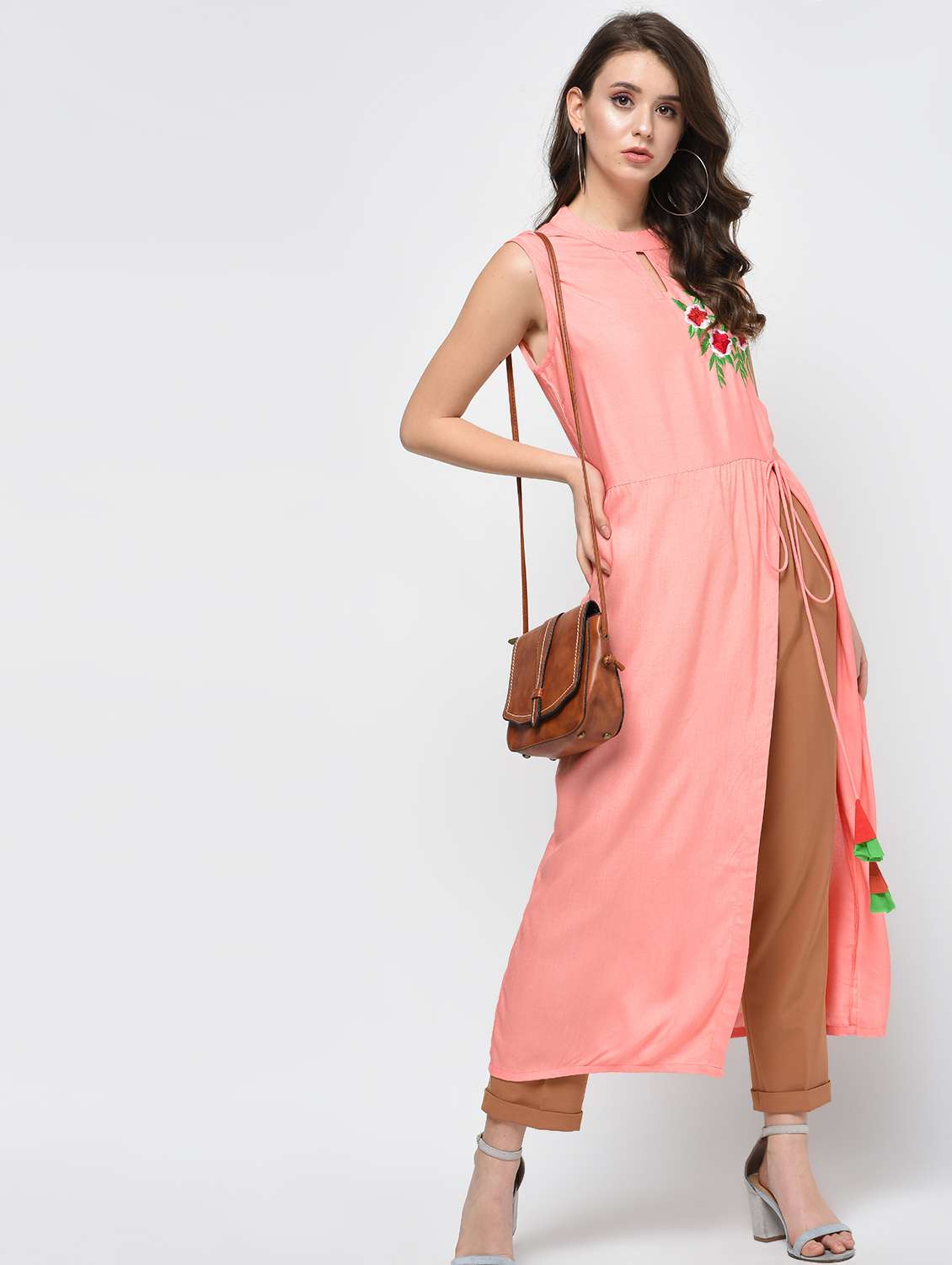 - » high slit embroidered kurta with tassels