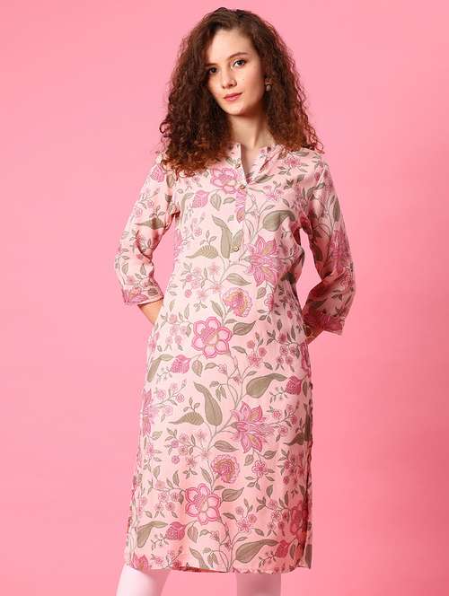 - Grab this beautiful kurta made up of rayon fabric featuring mandarin collar neck designs.