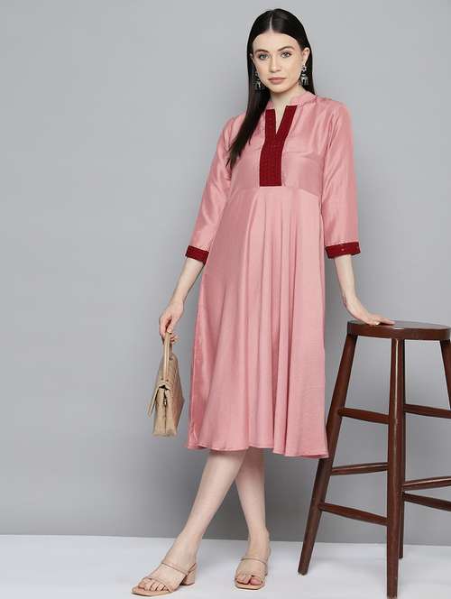 - Browse through the latest collection of casual wear ethnic dresses with three quarter sleeve designs to give a flawless desi look.