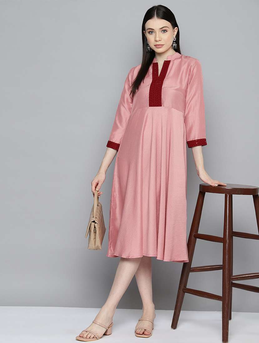 - » women mandarin neck fit & flare dress