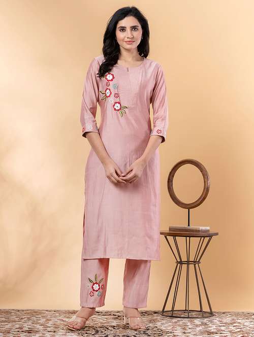 - Browse through the latest range of ethnic sets for women with tailored sleeve designs with embroidered works.