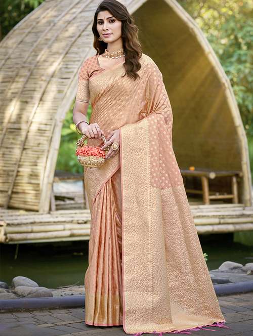 Sangam Prints Peach Silk Woven Work Festival Saree