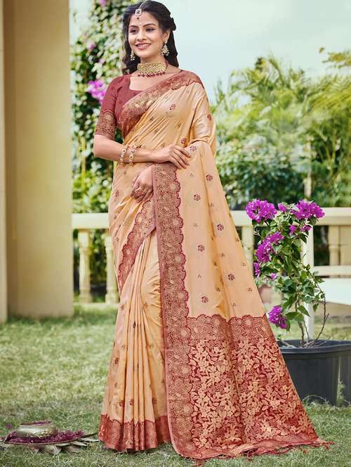 Sangam Prints Peach Banarasi Silk Woven Work Festival Tassle Saree