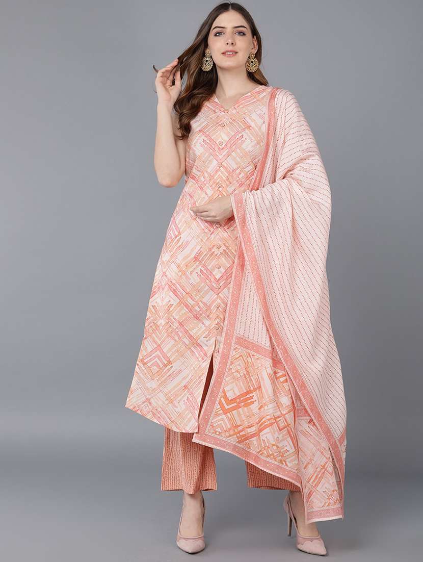 printed kurta pant set with dupatta   - 19817418 - Very Small Image - 1