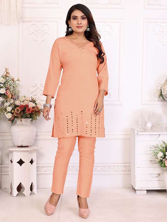 women solid with work three quarter sleeve ethnic co-ord set - 22009121 - Very Small Image - 1