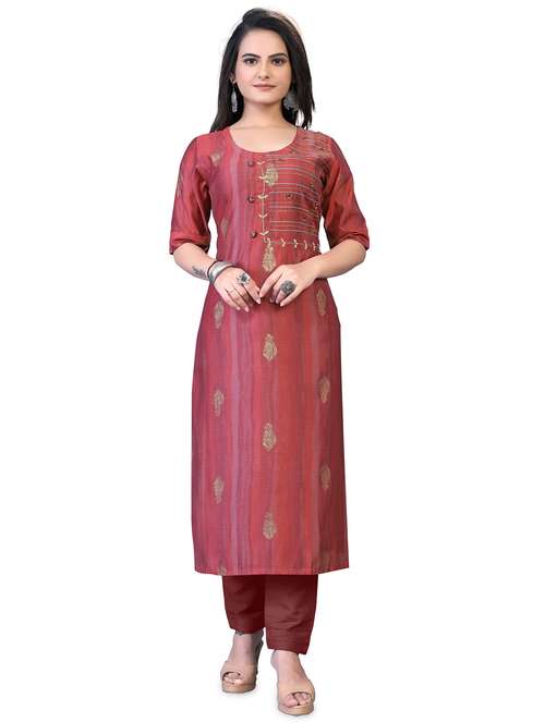 - Grab this beautiful kurta made up of viscose fabric featuring round neck designs.