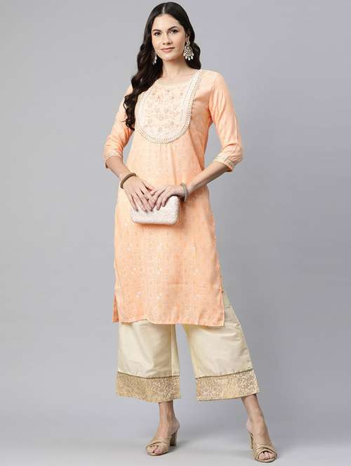 - » peach embroidered straight kurta