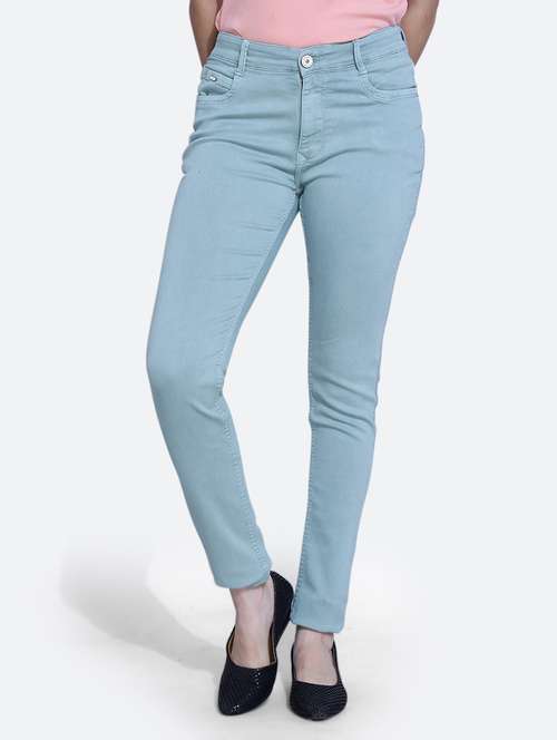 women solid light blue denim jeans