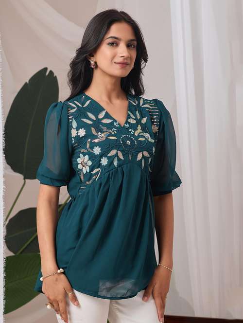 women embroidered v neck ethnic top
