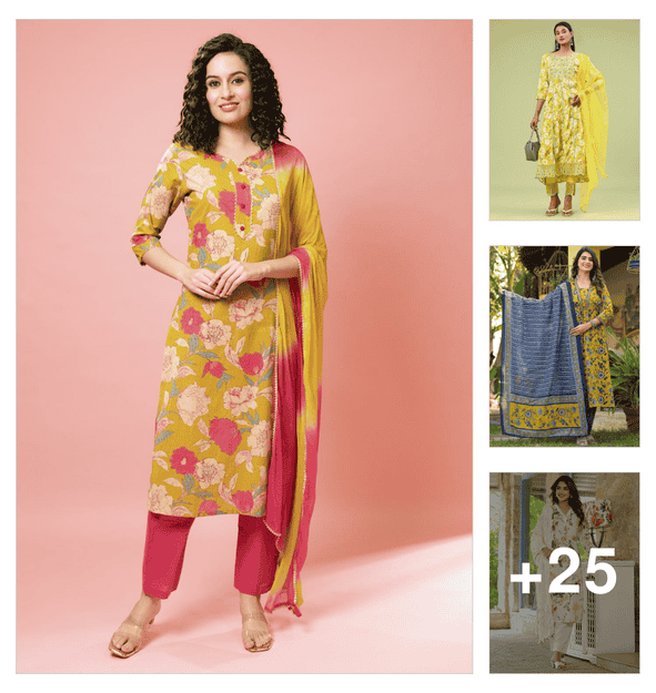 women plus size embellished three quarter sleeve kurta pant with dupatta set
