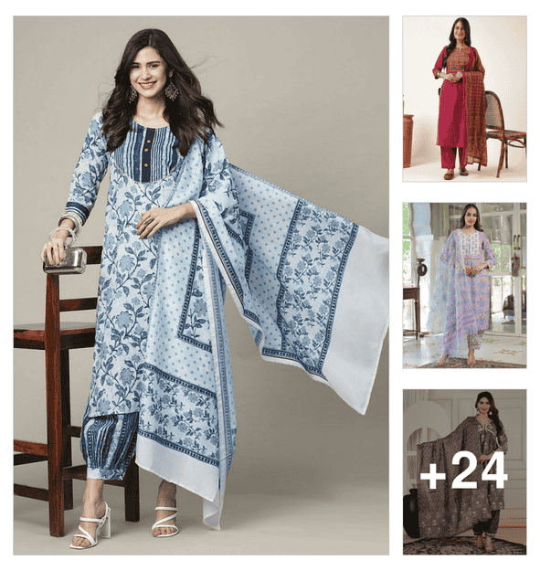 women plus size embellished three quarter sleeve kurta pant with dupatta set