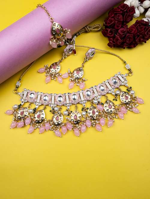 - Lay your hands on this exquisite jewellery set from StileAdda in pink colours.