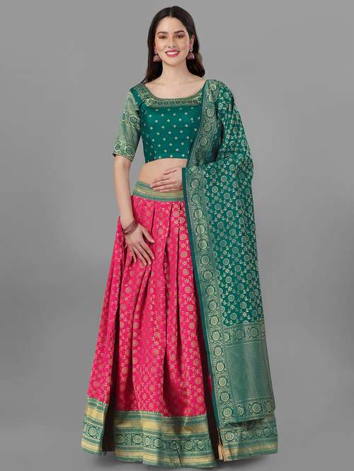 - » women pink unstitched lehenga choli with dupatta