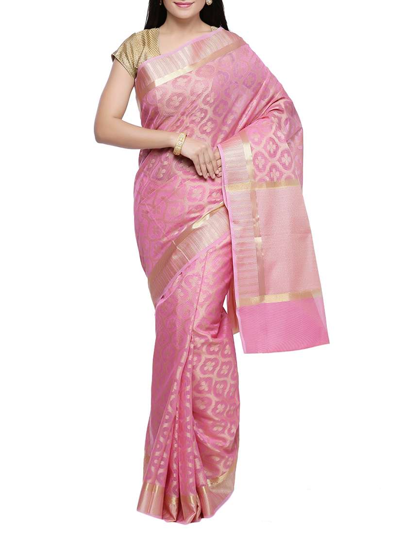 - » pink woven saree with blouse