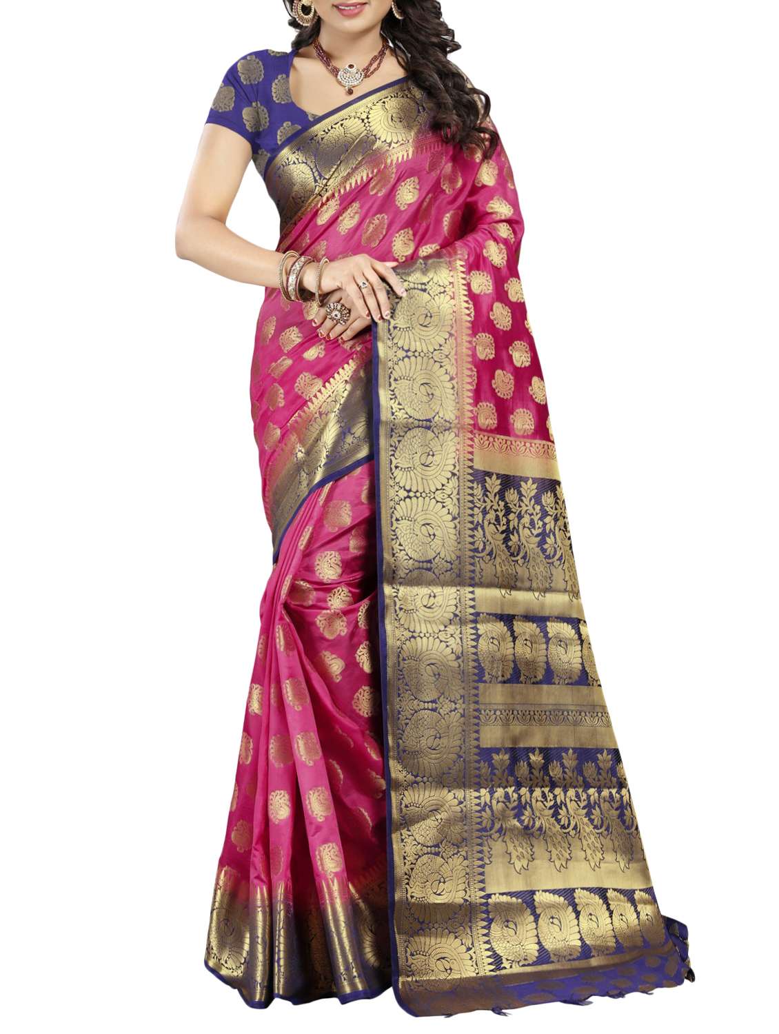 conversational contrast border banarasi saree with blouse - 15766981 - Very Small Image - 1