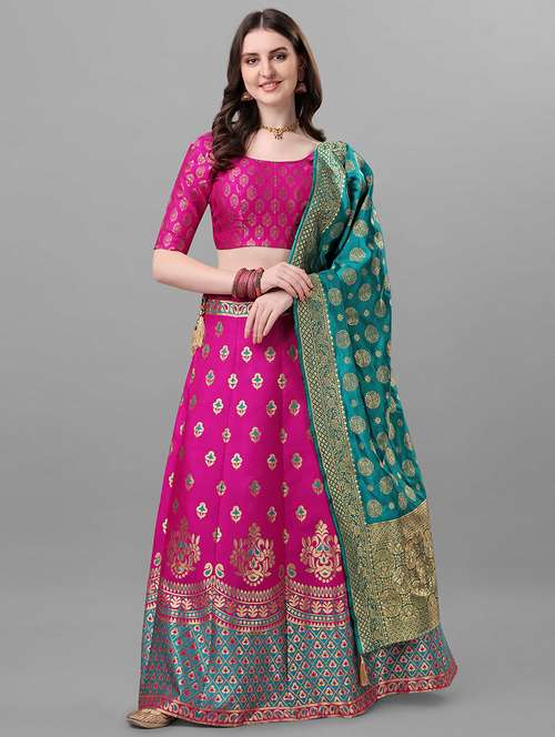 - » pink zari work flared lehenga