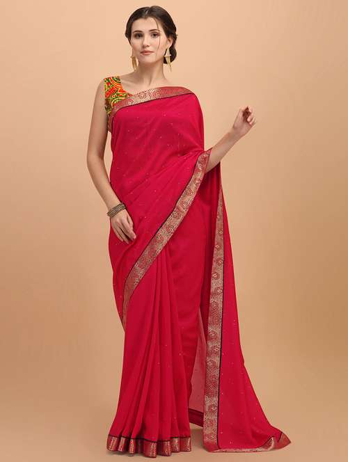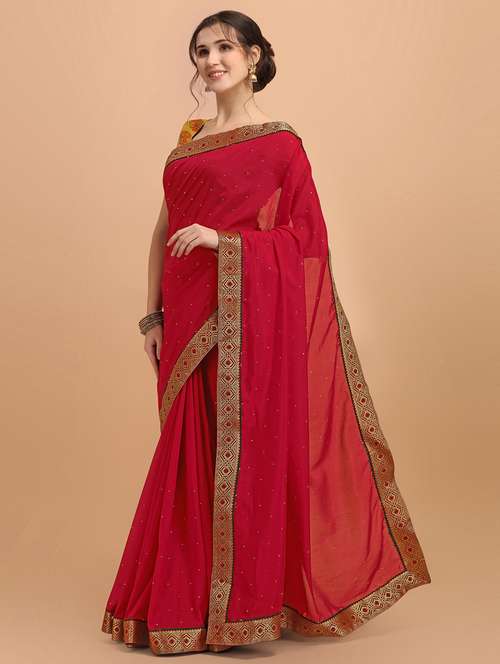 Fashion and style always depends on good color and fantastic combination of shades and so we create best shades to enhance your beauty and personality. Pamper the women in you with this pink colored festive wear saree. This saree is made of heavy vichitra silk fabric which is highlighted with beautiful embroidered work as shown. Paired with unstitched matching fabric blouse piece which can be stitched as per your choice and requirement. You can wear this saree for festivals, regular social meets and other homely events. Pair it with traditionally stylish accessories to complete the look. Note:- The actual product may differ slightly in color and design from the one illustrated in the images when compared with computer or mobile screen.