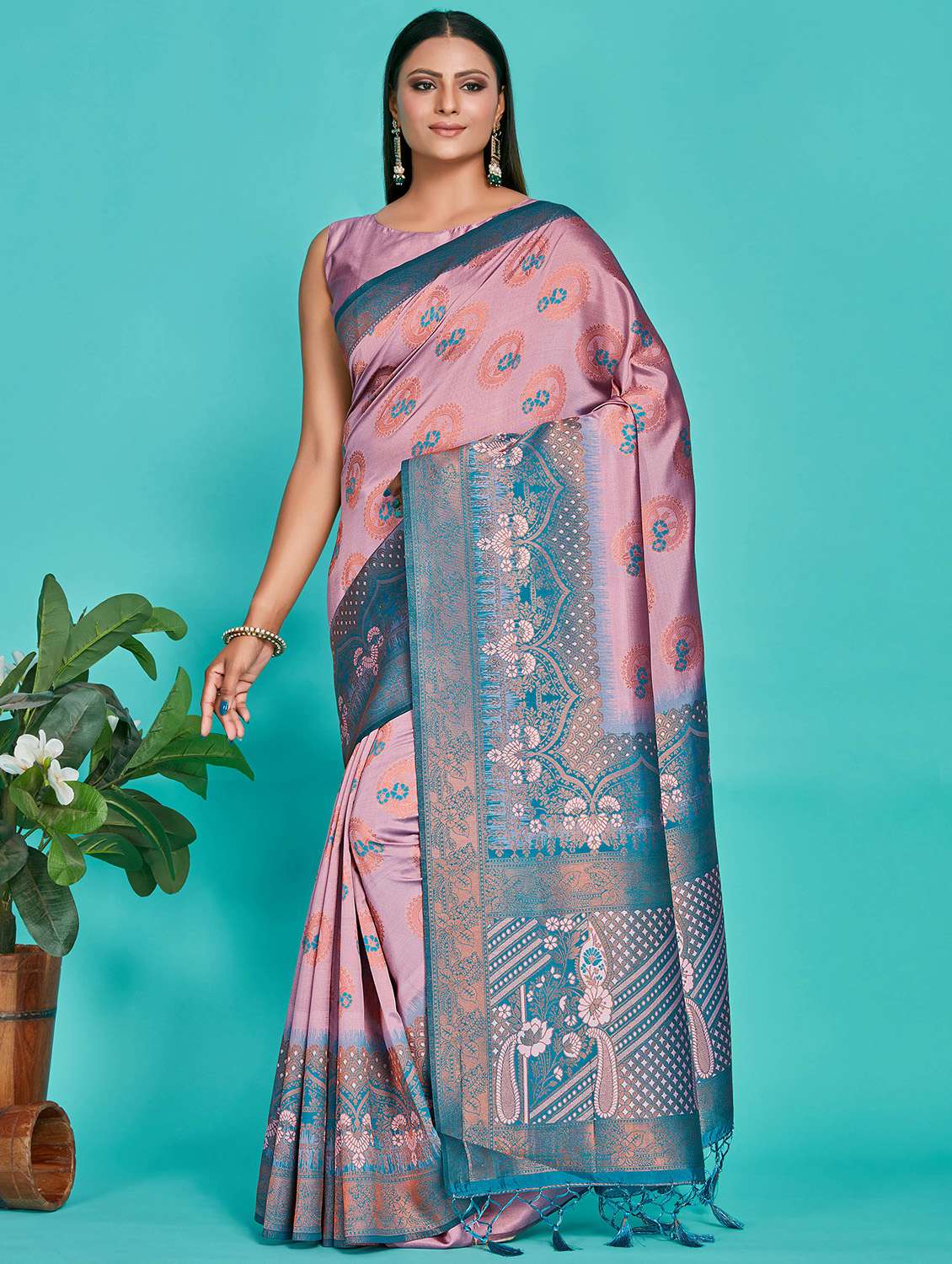Pink color Traditional Saree, With Woven Zari work with meena motif all over, Has Zari woven border and pallu and Tussel Work at the end , Comes With Pink Color Running Unstiched Blouse (Included In sarees Length 5.40 Mtr .80 Cm)