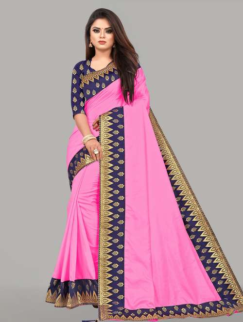 - » women's bordered pink colored saree with blouse