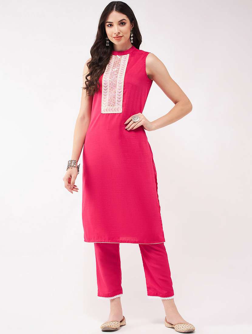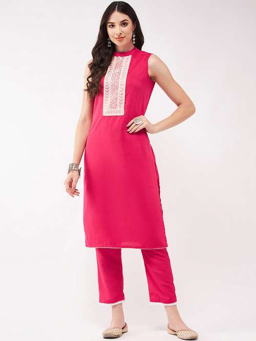 - Find gorgeous sets of ethnic wears in trending designs in pink colors suitable for festive wear of occasions.