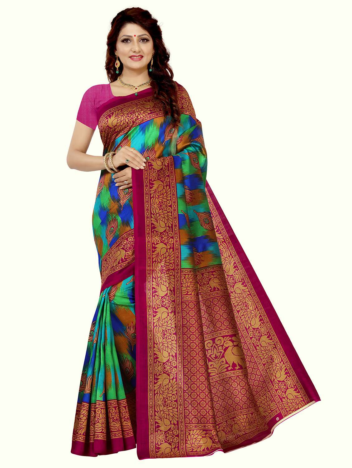 - » women pink printed saree with blouse