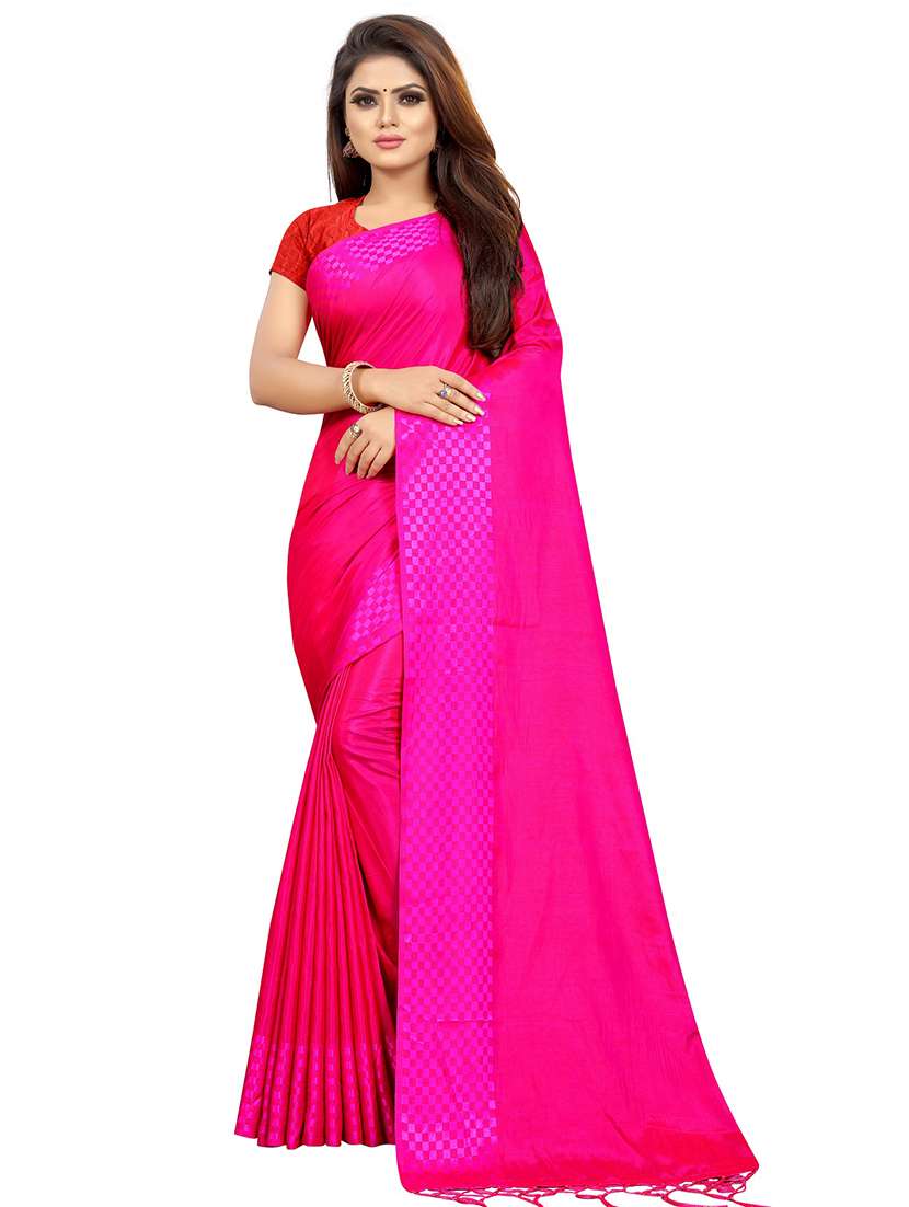 - » pink art silk plain saree with blouse