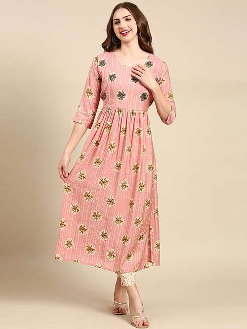 - » women printed round neck kurta pant set