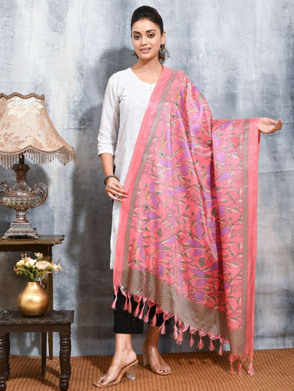 women kantha printed dupatta