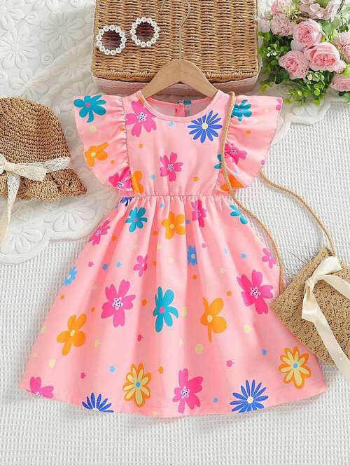 girls floral printed round neck frock