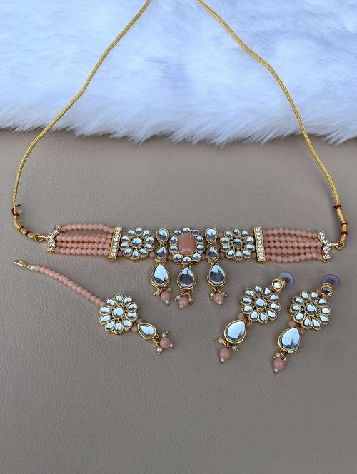 - » pink brass necklaces and earring