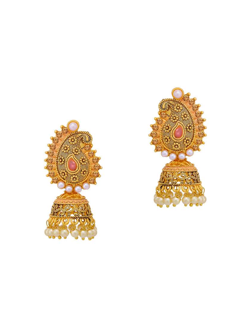 pink brass jhumka earring