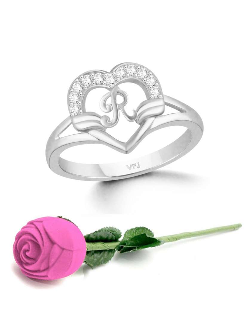 Vighnaharta Valentine collection Initial R heart ring with Rose Box alphabet for women and Girls [VFJ1667FRR7- ROSE- PINK ]
