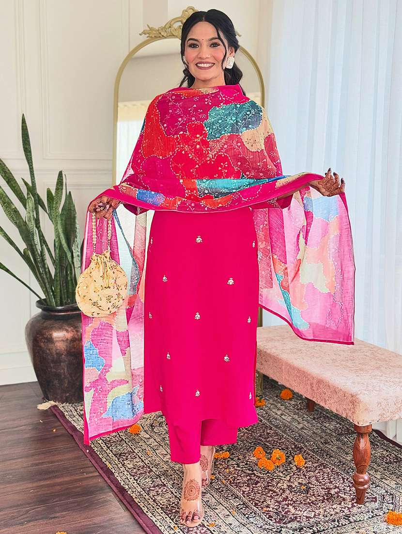 - Find gorgeous sets of ethnic wears in trending designs in pink colors suitable for festive wear of occasions.