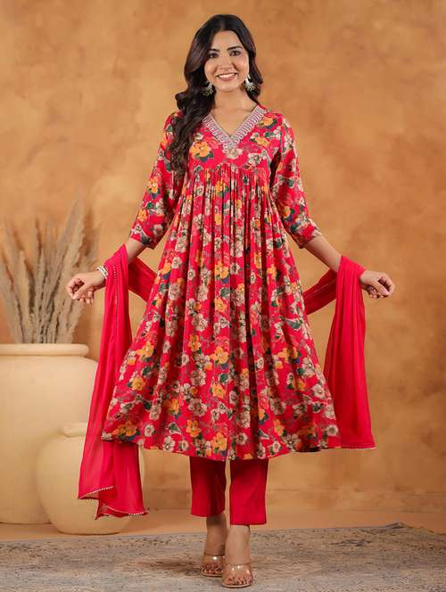 - Find gorgeous sets of ethnic wears in trending designs in pink colors suitable for festive wear of occasions.