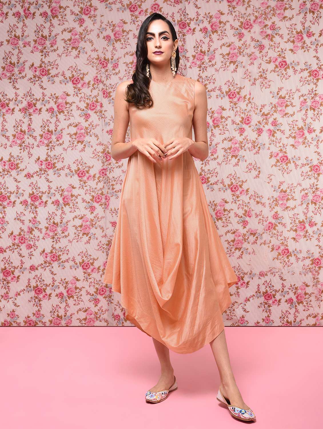 - » cowl hem chanderi solid ethnic dress