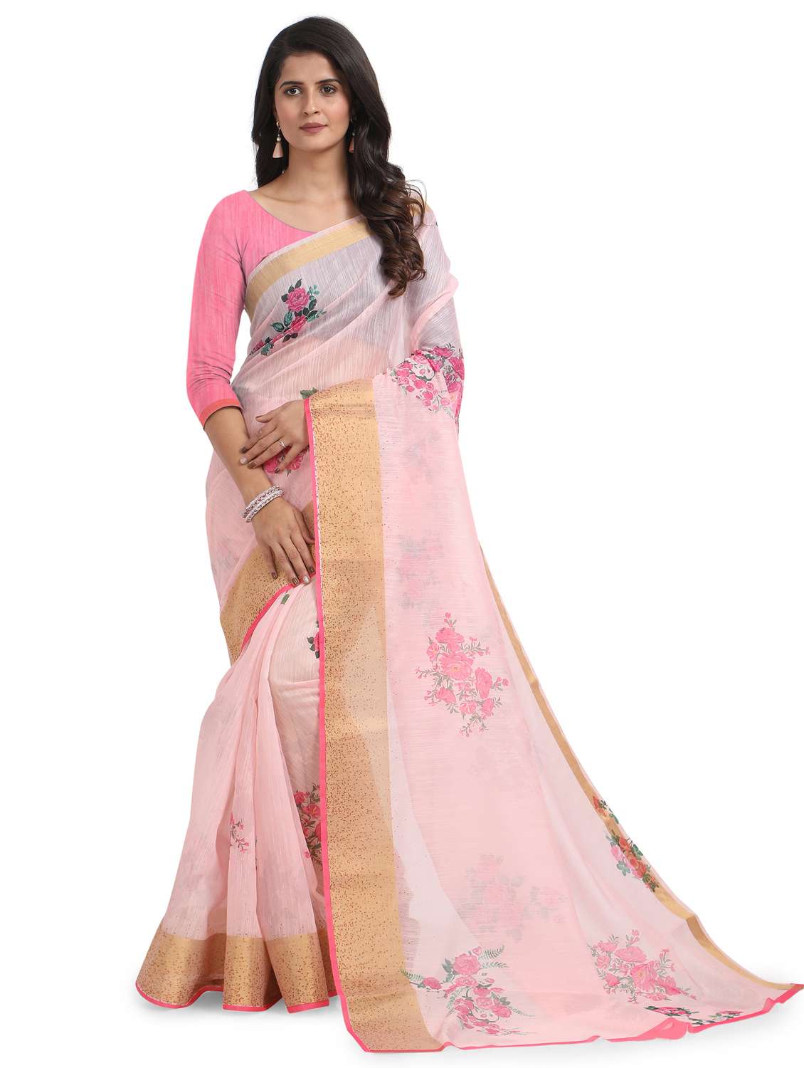 pink chanderi saree with blouse