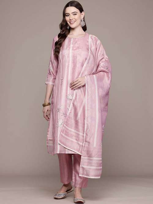 - Find gorgeous sets of ethnic wears in trending designs in pink colors suitable for festive wear of occasions.
