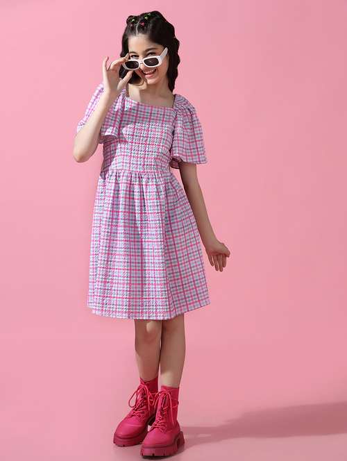 - » girls checkered flared sleeves a-line dress