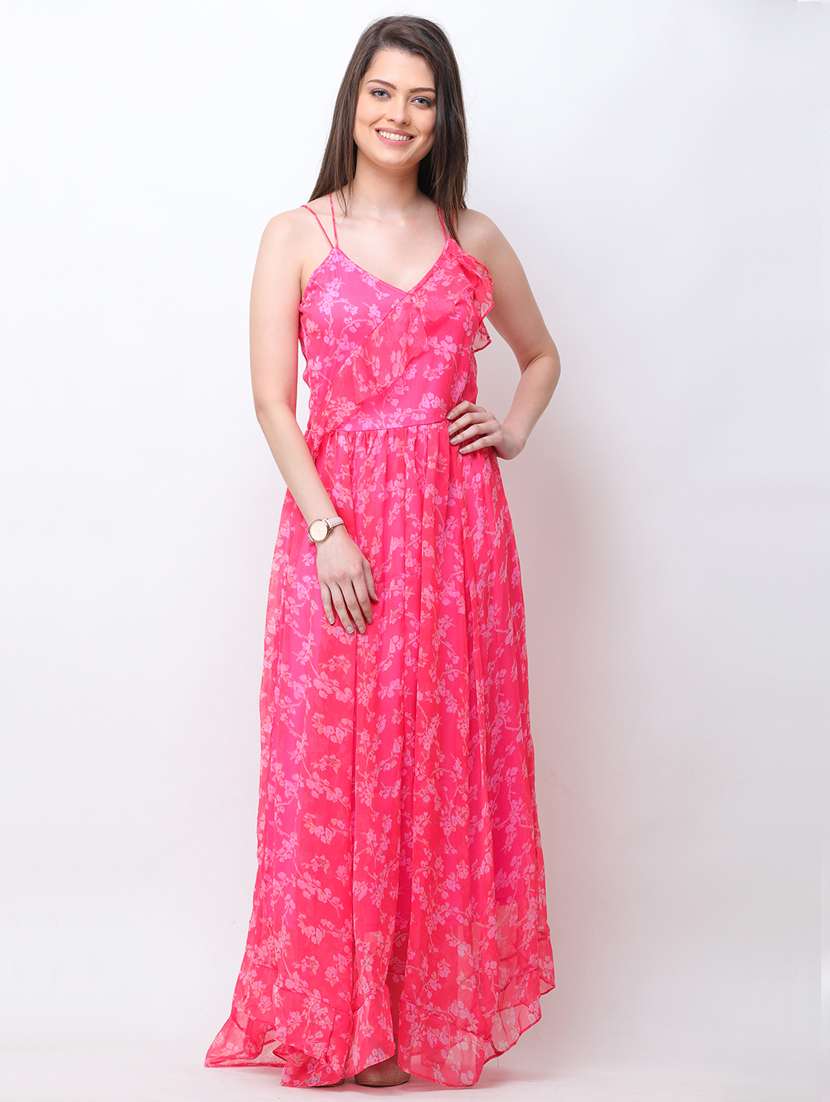 - Dress up in a soothing pattern and don this dress made of chiffon material.