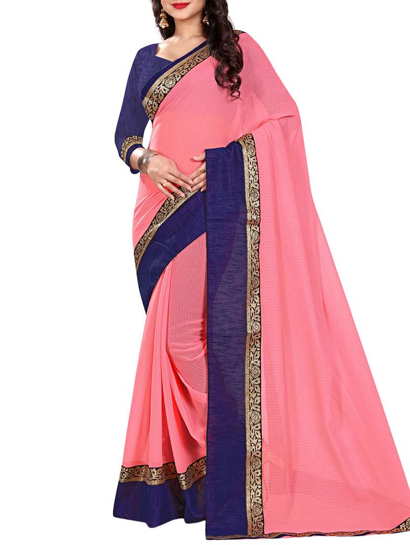 - » pink chiffon bordered saree with blouse