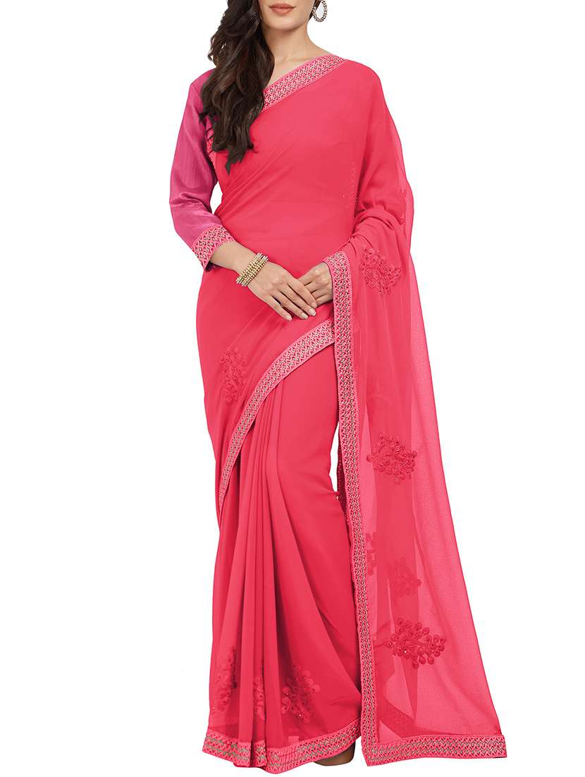 - » pink resham embroidered saree with blouse