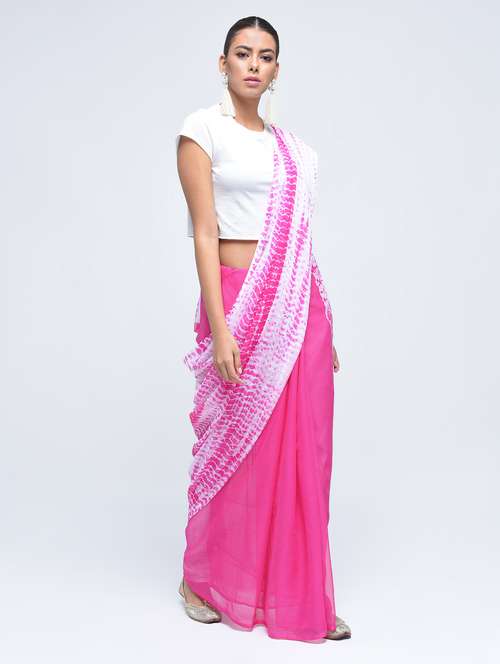 shibori printed saree with blouse