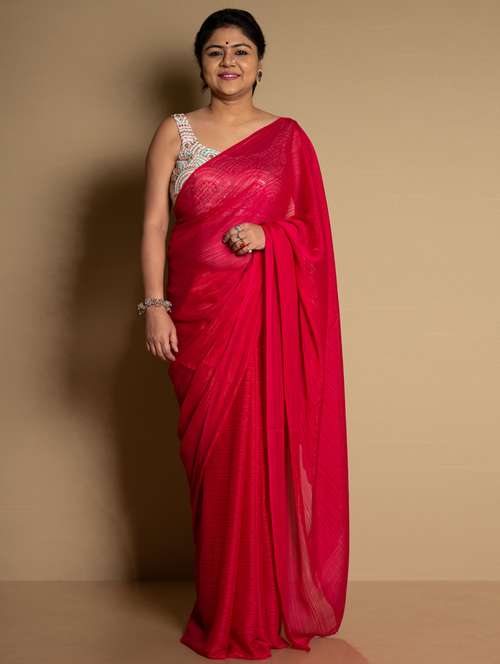 women pink solid saree